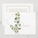 Begravningstack. Familj namn och tack på baksidan. Typografi. Vit bakgrund. Foliage. Enkelt. Eucalyptus. Guld text.
