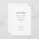 Meddela det kommande bröllop med det här enkla textbundna gotiska teckensnittet spara datumet. Perfekt för ett romantiskt bröllop, kombinerar modern minimalistisk design med elegantens kalligrafi. Den här svarta och vita besparingen av datumet erbjuder ett elegant och snyggt sätt att er speciella dag, perfekt för par som vill ha ett minimalistiskt tillkännagivande från bröllop.