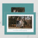 Det här enkla vågrät julkort innehåller ett foto på framsidan omgivet av en tårblått grönt örrbenet ram. Festiv väv ser ut som en vintrys-vibe i ge och den här typen gör att du kan skapa ditt eget personlig-meddelande. Baksidan har ett matchande interpolerat mönster och rum för ett andra foto. Den här utformningen av helgdag är helt i sin ordning och är underbar som ett familjejulkort, ett nytt julkort, ett semesterkort på stranden och till och med ett nytt årskort. Finns även i olika färg och stilar i Lea Delaveris Design-samlingen och som digital nedladdning av julkort.