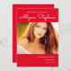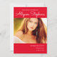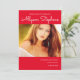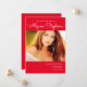 Enkel och klassad design med rött studenten-meddelande med ett enda stort foto på framsidan, med ditt namn på översta sidan och i skolan och klassen på grund i vit text. Underbar för högskoleexamen eller högskoleexamen.