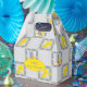 En söt könsneutral grått-preferenbox med en grått tecknad mus, en del av din schweizerost och vackra edelweiss-blommor. Perfekt för en babydusch. © ArianeC Illustrations-Alla höger reserverade