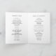 Enkelt uppfällt bröllopsprogram med en modern utformning av eleganten. Täcket har dina två första monogram tillsammans med dina bröllop-detaljer i svart över en lätt grått-bakgrund. Insidan har din bröllopsfest på den lämnat sidan och din ceremoni på högerna. Baksidan har ditt personliga tack till dig. All design inslag färg kan ändras i designredigeringsverktyget i verktyg. En chic och snyggt som är underbar för ett minimalistiskt par.