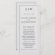 Modern Bröllopsprogram med en enkel men ändå elegant utformning med traditionell layout. Ditt två brev-monogram ligger överst tillsammans med dina detaljer omgivna av ett tunt gräns. All inslag är svart över en lätt grått-bakgrund och kan ändras i designredigeringsverktyget verktyg. En minimalistisk utformning med en klassisk känsla som är underbar för ett formellt bröllop.