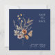 Enkelt marint blått höstfälle för vilda blommor Bröllop spara datum-kort - Rustic elegance för Boho Firande. Gratulera till kärlek i höstens varma omfamning med våra enkla, men häpnadsväckande, bröllop spara-till-datum-kort, som visar en harmonisk blandning av bruna och marinblå nyanser. Den rustiska charmen för dessa spara-date-kort kompletteras perfekt av skönheten hos vilda blommor, som inkapslar din speciella dags bohemiska anda. Den minimalistiska utformningen ger lite elegans och anger perfektens ton för ett orustiskt och bohemininspirerat bröllop. din kärlek-berättelse med familj och vänner genom de här krävande autumnala bröllop-spara-de-date-korten.