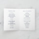 Enkelt uppfällt bröllopsprogram med en modern utformning av eleganten. Omslaget har dina två första monogram tillsammans med dina bröllop-detaljer i vitt över en marin blå bakgrund. Insidan har din bröllopsfest på den lämnat sidan och din ceremoni på högerna. Baksidan har ditt personliga tack till dig. All design inslag färg kan ändras i designredigeringsverktyget i verktyg. En chic och snyggt som är underbar för ett minimalistiskt par.