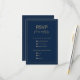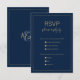 En modern enkel marin blå bakgrund och ett handskrivet bröllop OSA-kort för skript i guld.