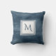 En enkel, subtil marmor design med fyrkantig dekorativ kudde i marockblått med ett modernt, vitt kvadratiskt märke som du kan anpassa genom att lägga till din inledande monogrammatiska design i. Detta är en del av Sailor Blue Subtle Monogram Collection.