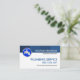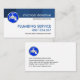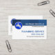 Ett minimalistiskt vitt skydd accentueras av en blå skuggad kolonn överst på kortet. Här ljuger du ditt prestigefyllda namn och din jobbtitel med en blå logotyp som du kan använda till den lämnat. Detta följs av namn PLUMBING SERVICE som du kan ändra och kontaktuppgifterna i blått. Nära basen finns ett sloganalternativ som du också kan byta till kostym för dina egna tjänstebehov. På andra sidan är kortuppgifterna på den lämnat med den blå logotypen överst, följt av din prestigefyllda namn, kontaktuppgifter och en sloganbeskrivning. En professionell för rörmokare till använda.
