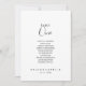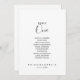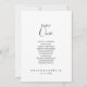 Detta enkla minimalistiska bordsnummer 1-sätesdiagram är perfekt för ett enkelt bröllop. Utformningen har ett vackert svart kalligrafteckensnitt i en vit bakgrund för att försköna evenemanget. Kortet skrivs ut verso (dubbla sided)