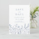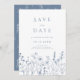 Ett kort av typen Dusty Blue Periwinkle Modern Bröllop spara datum med vildblommor, enkel minimalistisk Elegant. Hitta fler matchande utformningar och varianter från min butik. Och kontakta mig gärna för ytterligare anpassning eller matchning av objekt.