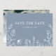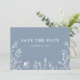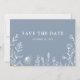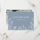 Enkelt minimalistiskt Wildblomma Dusty Blue Bröllo Spara Datumet