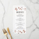 Det här enkla minimalistiska fallbröllopsmenykortet har sprickor av ömtåligt höst löv överst och grund, med en elfenbensbakgrund. Sök efter matchande produkter i samlingen, eller kontakta mig genom Zazzle-chatta om du vill ha ytterligare produkter eller andra färgrutor.
