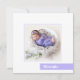 Fyrkantig 5,25-tums x 5,25-tums tillkännagivande för födelse har ditt favoritfoto från nyfödda och ditt baby namn på ett lavender färg block på framsidan och födelsestatus och ditt namn på baksidan. **KVADRAENVELOPES KRÄVER POSTAGE EXTRA. A7-kuvert för använda 5" x 7" för normal portionshastighet. MER FÄRG I VÅRT SAMLING! Se till att kontrollera din beställning dubblan innan du lägger till den i din kundvagn eftersom det du ser på skärm är vad som skrivs ut. Live Design Service kan hjälpa dig med designlayouten om det behövs.