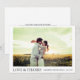 Den här enkla, snyggt moderna fotot-bröllop-tackmallen som du använder innehåller namn och datum under fotot tillsammans med KÄRLEK & THANKS. Du kan välja att ändra teckensnitt, interpunktion eller färg som används för olika inslag av den här designen framifrån och/eller bakåt. Du kan till exempel välja att ändra färg i texten "KÄRLEK & THANKS". Vi valde en mycket lätt orange i blek för bakgrunden.