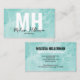Enkelt Affärskort av modern vattenfärg, Teal Monogram. En roligt och ett enkelt affärskort för varumärken, småföretag eller enskilda personer som t.ex. lashspecialister, konstnärer, estetiker, hårstilister, företag eller kontorsföretag och så mycket mer! Högerna är nu en turkos- eller tealblått, svart och vitt färgämne, men du kan faktiskt byta ut färg mot spelar ingen roll som du vill ha använda! Den vita vattenfärgen mönster förblir överlagrad över färg som du väljer för bakgrunden. En blandning av modern och skripttypografi för en professionell men chic.