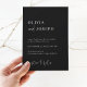 Den här eleganten är svarta bröllopsinbjudningar enkla och minimalistiska men ändå mycket snyggt på grund av det moderna handskrivna skript och den rena layouten.