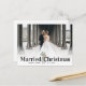 Ett enkelt, modernt helgdag-kort med elegant rött skript och ett tack till dina gäster. Bilden par kan vara personlig.