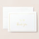 Ett enkelt vikat guld-folie Bröllop Tack-kort med en modern utformning av eleganten med två brev-monogram tillsammans med ett tack i ett handskriftsteckensnitt omgivet av ett tunt gräns. Insidan har ditt personlig-meddelande. All inslag på framsidan är i guld. En chic och snyggt som är underbar för ett minimalistiskt par.