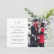 Med ett enkelt foto sparar du datumkortet med en modern utformning av eleganten med två brev monogram och dina bröllop-detaljer i svart över en vit bakgrund. Till högerna är lodräts favoritfoto. Baksidan är helsvart och typsnitt och baksidan kan ändras till valfritt färg. En chic och snyggt som är underbar för ett minimalistiskt par.