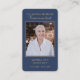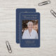 Affärskortets dimensioner: 3,5 x 2,0 tum. Den här enkla mallen för betalkort på en klassisk blå bakgrund med skripttypografi av elegant guld kan ges som en keepsaké vid en Firande av Life- eller begravningstjänsten eller skickas som en speciell hyllning till dem som inte kunde närvara. Anpassa det här kortet med ett favoritfoto, namn, datum (framsidan av kortet) och val av bön eller dikt (baksidan av kortet). Enkel att anpassa.