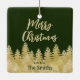 Elegant Julgran prydnadsämne med mörk grönt bakgrund och faux guld foil gräs träd skogsilhouette. Alla texter, inklusive julmeddelandet, år och familj namn är anpassade.
