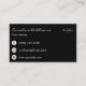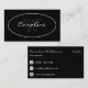Ett affärskort i en enkel utformning och elegant i vitt på svart med namn och monogram i en oval på framsidan och kontaktinformation på baksidan.