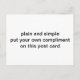 enkelt och rakt sätt din egen komplimang på detta vykort, är ett trevligt sätt att säga hej till en kära vän. Glöm inte att köpa detta enkla och raka vykort idag.