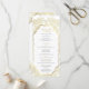 Det här bröllopsprogrammet omfattar ett minimalistiskt guld-mönster med en liten charm. Framsidan täcker presenter parets namn i ett rent guldfärgat ram, och belyser elegans genom enkelhet. Baksidan bär detaljerna kring bröllop i fullt i en bra utformning, som är underbart accentuerad med raffinerade guldblomningar. Dess underskattade stil och moderna minimalism gör detta programkort idealiskt för par, som föredrar tidlös sofistikering med en graciös, charmerande beröring.