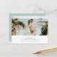 Bröllop Spara vår Datum. Foto. Enkelt. Bröllop webbplats. Vit bakgrund och bakgrund av skaldjur. Seafoam och svart typografi. Vykort.