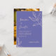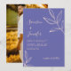 En bröllopsinbjudan med det varmaste men lyckligaste färg av alla blåa hues, periwinkle blue, som också kallas Detta är färg 2022. Ett tema i perfekt bröllop färg för att inleda det nya året. Den kombineras med ett handdragen löv av kräm- färgad på båda sidor. Namnen av brud och groom är i kalligrafbokstäver.