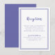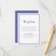 Kortet för enkel, minimalistisk och elegant bröllop-mottagningsinformation har en contemporary med dubbla ram gräns i periwinkle blue på en klassisk vit bakgrund. Traditionell ordalydelse ger en tidlös men ändå modern sofistikering. Anpassa bröllop-design med dina detaljer i blått tecken och skript. Kortets baksida matchar i solid BLUE.