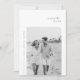 Vi presenterar det enkla fotokortet Spara datum meddelande, perfekt för par som vill ha elegans och enkelhet. Det här lyxkortet har en svart och vit snyggt med ett vackert foto av paret, som skapar en tidlös nyckelroll. Contemporaryns typografi och minimalistisk utformning ger en sofistikerad men ändå avslappnad vibe, perfekt för trendig och chic bröllop. Hämta kärnan i din kärlek-artikel med den här eleganten spara datumkortet som sömlöst blandar modernitet och romantik.