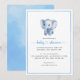 Fira din pojke med den här charmerande och enkla inbjudan till babyduschen. Den här designen har en söt vattenfärgselefant, perfekt för en sofistikerad men underskattad händelse. Blekens blå bakgrund ger en aning lugn. Anpassa den här inbjudan med all information om party, skapar den som en minnesvärd keepé för vänner och familj. Gör detta speciella tillfälle oförglömligt med denna vackert designade inbjudan till babyduschen.