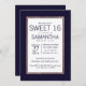 Modern, enkel och elegant faux-utskrift ro guld streck på marinblått och vitt, svenskt 16-dagarsbjudande. Den här klassiska och sofistikerade designen är perfekt för klasser, trendig och snyggtar. Anpassa med ditt eget meddelande på framsidan och ett anpassat inledande monogram på baksidan. All fotoutskriftsdesign.