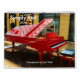 Bara Red 2026-kalender. För dem som kärlek har något rött. Ett flytande flygplan, en vintage brandmotor, ånga tåg, en turistbåt, det minsta huset i Underbara Storbritannien, ett stort piano, helikopter, ro, väg tåg, poinsettias, vakterband, en plocka uppåt lastbil och en gigantisk hummer.