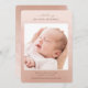 Elegant modernt förlossningsannonsering för vattenfärgen bohemian stil med abstraktens neutralt rosa med detaljer. Skript som introducerar linje och modern ren sans serif-typografi typsnitt. Utrymme på framsidan för ett stort enda foto tillsammans med födelsestatistik, inklusive födelsedatum och födelsetid, samt en baby-, längd- och kort-linje med föräldrarnas namn. Baksidan har ytterligare två fotoutrymmen.