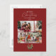 glädjen med dina kära den här julhelgen med eller eleganten på helgdag för julfoto, med en 4 fotokollage på framsidan för dina familjefotografier och utrymme för att lägga till namn i familjen på en djup röd bakgrund. En illustration av vattenfärgen gräs löv och hullbär plus manustypografi kompletterar den övergripande utformningen av en chic festkänsla. På den vita baksidan finns det utrymme för att lägga till ditt eget personliga budskap om helgdag för dina kära, tillsammans med ett mindre gräs och bärmotiv. En enkel men elegant design som du kan anpassa till din familjs stil, och sedan med din familj och dina vänner i julklapp!