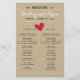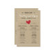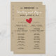 Bröllopsprogram av enkelt hjärta med röda accenter på tryckt Kraft-bakgrund. Ge gäster om ceremonin. Perfekt för en rustik lada bröllop!