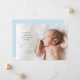 Det här födelsemeddelandet innehåller enkel text med sidorientering. Baksidan har en blå bakgrund som kan redigeras med utrymme för ett annat foto.