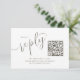 Ett enkelt svarskort med enkel bröllop OSA, med en QR-kodwebbplats, ett kalligrafiskt skript för elegant, enkel snyggt, modernt hölje, budgetvänlig, svarsrespons, online, abb-elegant minimalistisk, minimal