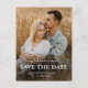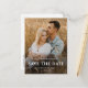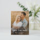 Ett enkelt Namn Photo Bröllop spara datum-kort med fullt utfallsfoto och övertäckningstypografi på framsidan. Baksidan är brevlådevykort med ytterligare information. Klicka på knappen Redigera om du vill anpassa designen.