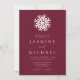 Gratulera till din speciella dag med vår enkla inbjudan till Vin-bröllopet. Den här eleganten har en djärv vit snöflake mot bakgrund av vin-färgaden och gör att par kan anpassa sig med sina namn och bröllop-detaljer i vita serif-bokstäver och kalligrafaccenter. Denna inbjudan är perfekt för modern vinter, helgdag och jultid i bröllop, och den anger perfektens tonläge för ett festligt och minnesvärt firande.