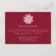 Fyll i bröllop-sviten med vårt enkla softabildkort för bröllopsmottagning. Med en fet vit snöflinga överst och dina bröllopsmottagningsdetaljer i vit serif-skrift på burgundisk bakgrund är detta kort perfektens tillägg till vinter, helgdag och jul-bröllop. Utformningen är enkel, modern och elegant och erbjuder en snyggt för att din mottagningsinformation med gästerna.