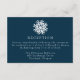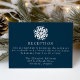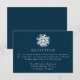 Fyll i bröllop-sviten med vårt enkla solljusgubbsmottagningskort. Med en fet vit snowflake överst och dina bröllopsmottagningsdetaljer i vit serif-skrift på marinbakgrunden är detta kort perfektens tillägg till vinter, helgdag och jul-bröllop. Utformningen är enkel, modern och elegant och erbjuder en snyggt för att din mottagningsinformation med gästerna.