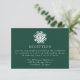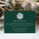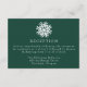 Fyll i bröllop-sviten med vårt enkla softabildkort för Grönt under bröllop. Med en fet vit snowflake överst och dina bröllopsmottagningsdetaljer i vit sif-skrift på bakgrunden till grönten är detta kort perfekten som tillägg till vinter, helgdag och jul-bröllop. Utformningen är enkel, modern och elegant och erbjuder en snyggt för att din mottagningsinformation med gästerna.