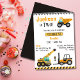 Bygg en oförglömlig födelsedagsbäcken med den här engagerande designtematiska inbjudan! Perfekt för alla unga byggare som vrider två, den här inbjudan innehåller ett fet nummer "2" parat med en glad illustration av lastbil och anger en lekfull ton för firande. Födelsedlarna namn, som födelsedlarna fyller i öga, är tydligt utformade, med datum och klockslag, med tydlig orange och svartvitt, och party. Ett festivt byggnadsband mönster linjer grund, som garanterar all nödvändig information. Ytterligare fordon, t.ex. en kran och ett gaffeldrag, illustreras vid grund och förstärker temat. De subtila bakgrundsdetaljerna, som ett däck går mönster högst upp, knyter ytterligare till byggtemat utan att överväldiga inslag. Baksidan av inbjudan är helsvart, vilket ger en elegant och polerad avsluta som kompletterar den vibrerande framdesignen. Se till att ditt barns födelsedag är ett byggtemat firande att minnas! Tack för att du stannar här. Om du hyser några tvivel om anpassningen ska du meddela mig här eller kontakta mig på arteartz0588@gmail.com.