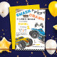 Upplev upphetsningen för ditt barns födelsedag med vår "Monster Lastbil Bash 1st Birthday Bash!" Detta är perfekt för den unge monsterentusiasten lastbil, med dynamiska illustrationer av det växande monstret lastbilar i handling, kompletterad med spår som går i lera stänk och däck. Fetstilt och vibrerande text deklarerar "SMASH och CRASH", som ställer in steget för ett oförglömligt, högoktanskt firande. Inbjudan är designad med en lekfull men tålig estetik, som innehåller tävla inslag som schackrat flaggor och en smutsig stäng bakgrund. Det framträdande numret "1" belyser ditt barns nya ålder, samtidigt som anpassadet med uppgifter garanterar att all party-information är tydligt förmedlad. Den energiska kombinationen blått, gult och svart färg ökar spänningen och skapar inbjudan ett verkligt avståndstagande. Oavsett om ditt party-tema omfattar monster lastbil tävling, hindrande kurser, eller bara mycket roligt och spel, kommer inbjudan att få gästmotorerna att fungera med förväntan. Perfekt till alla barn som kärlek monsterets lastbilar, det här inbjudan utlovar en födelsedagsäck som är fullt av uppståndelse och äventyr! Tack för att du stannar här. Om du hyser några tvivel om anpassningen ska du meddela mig här eller kontakta mig på arteartz0588@gmail.com.
