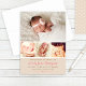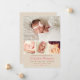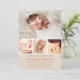 Vi presenterar din lilla flicka med detta söta födelsekort med fyra bilder och vita hjärtaccent på en rustik neutral beige bakgrund. "Meddelar ankomsten av" i rosalila skrivstil med barnets namn, födelsedetaljer och ett "Stolta Föräldrar"-meddelande. Baksidan har ett koordinerande beige hjärtmönster. Rosalila, ljust brun och neutral beige nyans. All text är helt anpassningsbar.