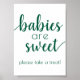 Modern "Spädbarn är söt: ta en Behandla"-dusch, party eller bord-skylt med en roligt, avslappnad handskript. Den klassiska designen innehåller ett modernt hanterat textöverlägg för citattecken. Det vackra teckensnittet med anpassadets bakgrund färg gör det enkelt att passa alla teman. För andra färg eller matchande produkter, gå till butiken JustFharryn Zazzle eller kontakta designern, c/o fharryn@yahoo.com Alla höger reserverade. #zazzlemade