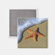 Strandfotografi, en skarp orange stjärnfisk på vatten kant ska snart täckas av en lätt våg.